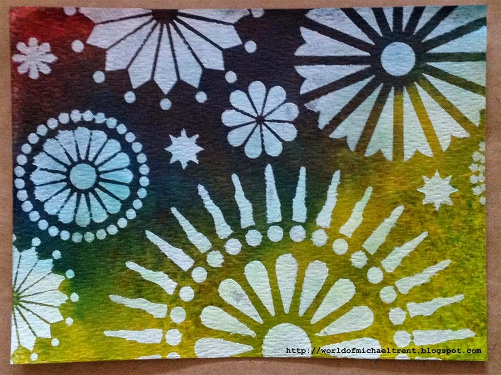 Piece 3 - I did not have any bleeding of the Dylusions or of the acrylic paints. Interesting - since I did not seal the Dylusions after I used them and Ranger claims not to have any type of seal for them.